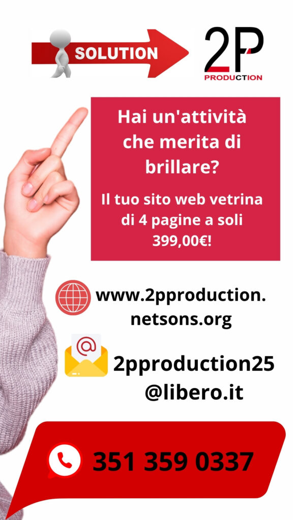 Design professionale e personalizzato Fino a 4 pagine informative Ottimizzazione per dispositivi mobili (responsive) Sezione contatti con modulo Base di integrazione con i social media Hosting e dominio per il primo anno (opzionale, specificare se incluso) Supporto iniziale